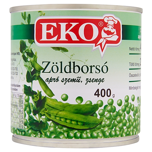 Magyarországon, ellenőrzött körülmények között termelt zöldborsó. A nyersanyag frissen, a betakarítást követő 4 órán belül, előfőzés után a dobozba is kerül. A terméket hőkezeléssel tartósítjuk, így őrizzük meg a zöldborsó értékes beltartalmi összetevőit. A termék nem tartalmaz tartósítószert, mesterséges adalékanyagokat, vagy állagjavítókat. A terméket tépőzáras, vagy hagyományos tépőzár nélküli dobozban készítjük.