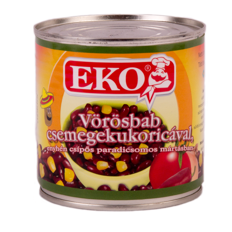 vörösbab, ivóvíz, morzsolt csemegekukorica, paradicsom sűrítmény, cukor, étolaj, hagyma, étkezési só,kukorica keményítő, fűszerkivonat