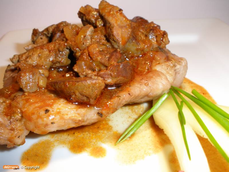 A sertéstarját 5 szeletre vágjuk, sóval, borssal fűszerezzük, és forró zsírban megsütjük. A kockára vágott füstölt szalonnát kiolvasztjuk, megpirítjuk benne a karikára vágott vöröshagymát, majd hozzáadjuk a csirkemájat. Készre sütjük és hozzákeverjük a natúrlecsót. Tálaláskor a sült tarja szeleteket leöntjük a lecsós raguval. Főtt burgonyával kínáljuk. Füstölt szalonnából készített kakastaréjjal és salátalevéllel díszítjük.